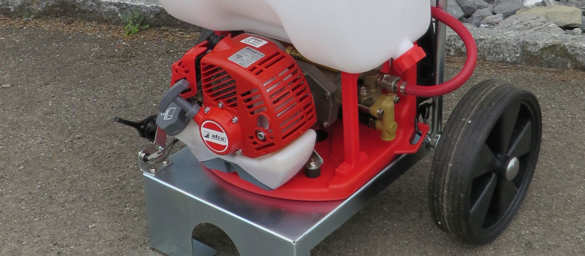 (Mit wenigen Handgriffen kann die Spritze wieder als Rücken-Motorspritze (Leergewicht 9 kg) verwendet werden). - PE-Tank 25 L